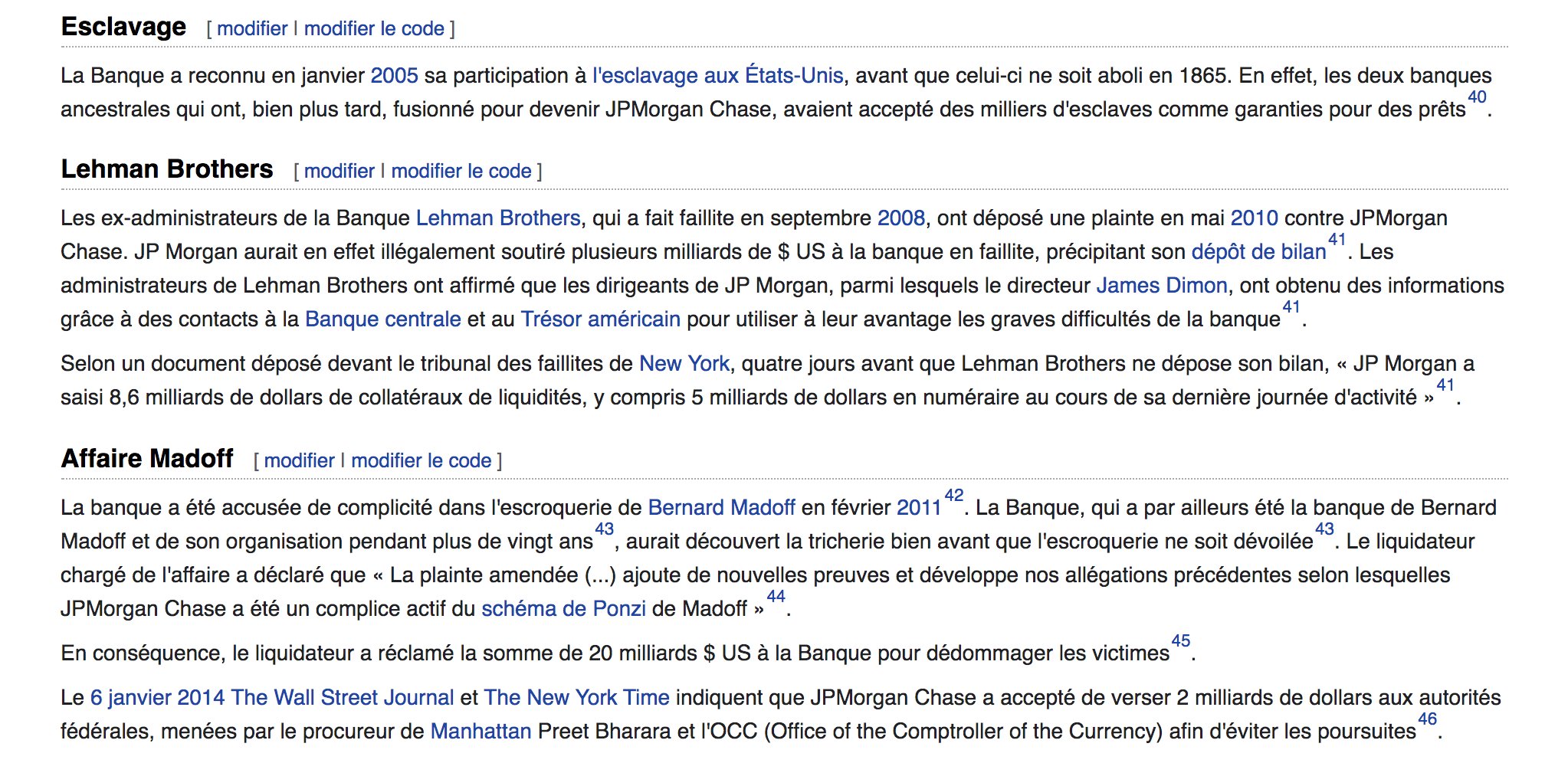 La fiche wikipedia de JPMORGAN (la banque qui finance la Super-League) on dirait le CV de Sauron.