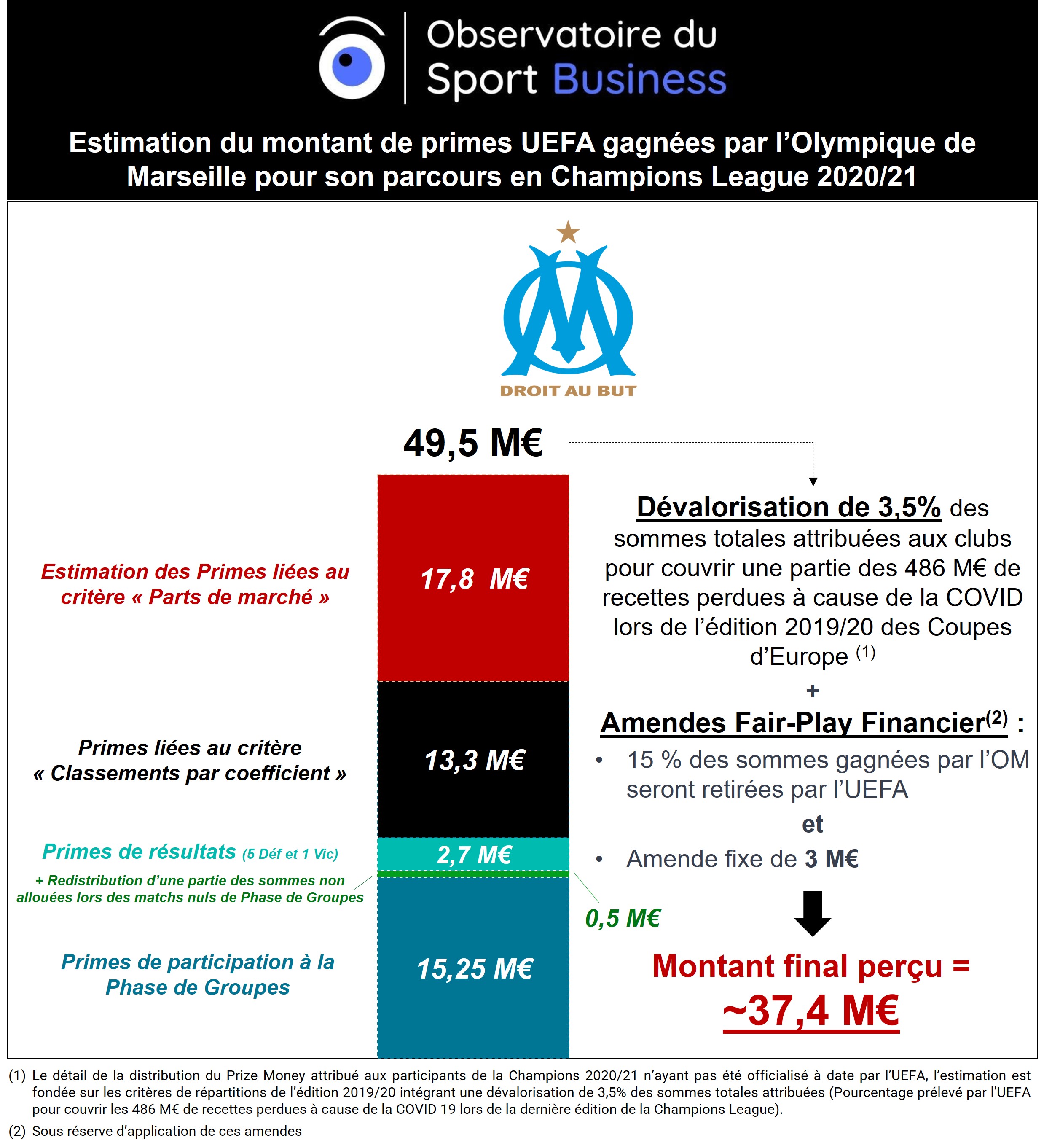 💶🏆 Suite à l'élimination du #PSG, l'#OM devrait toucher selon nos calculs 37,4 M€ de primes UEFA pour son parcours lors de la #ChampionsLeague 2020/21 ⤵️