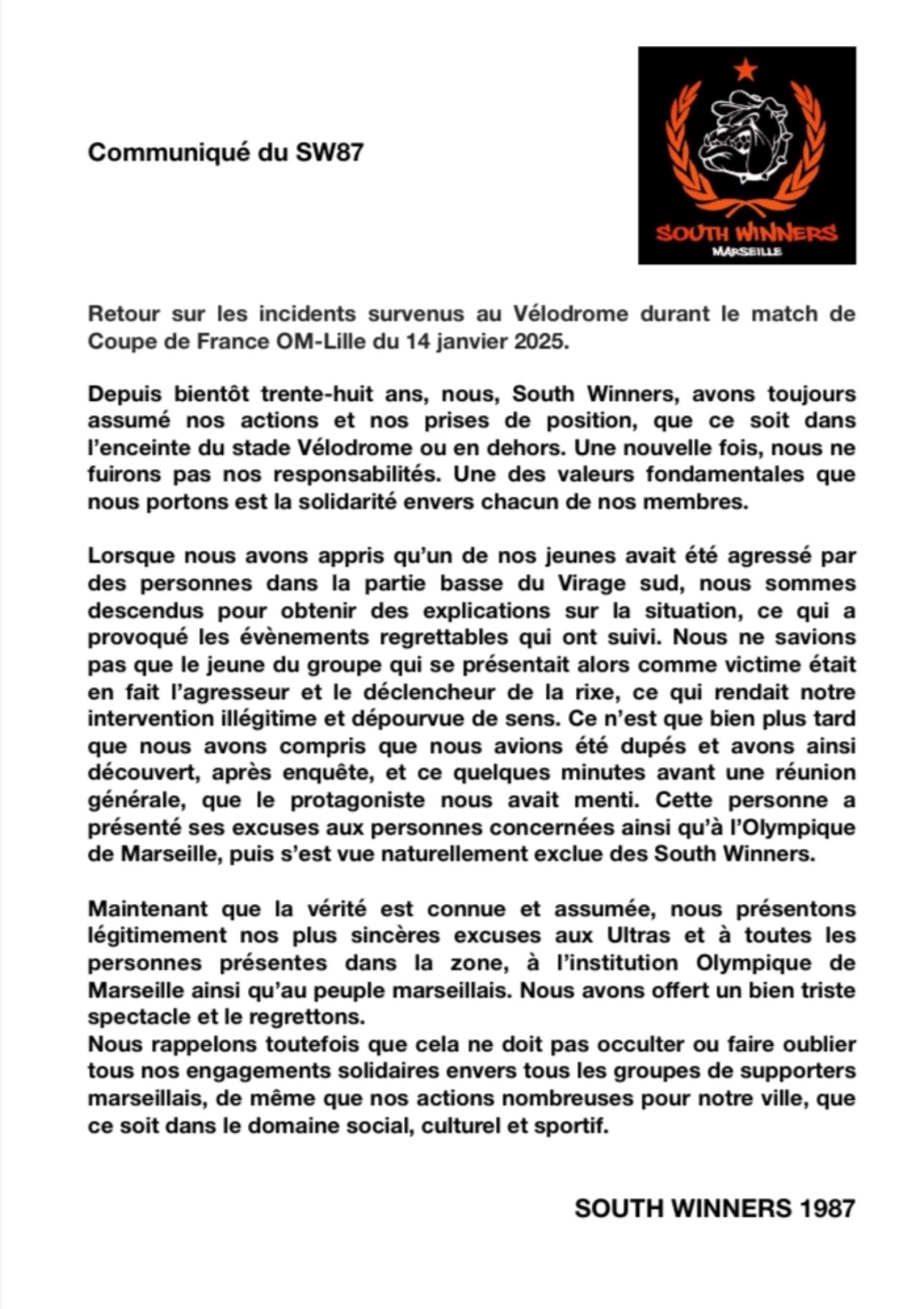 Des échauffourées ont éclaté mardi au stade Vélodrome pendant le 16e de finale de coupe de France entre l’OM et le Losc. Selon plusieurs sources, l’origine du conflit est partie d’un pétard envoyé par un membre des South Winners sur un abonné du Commando Ultras 84 dans le virage Sud.hooliganscz1999 a écrit :