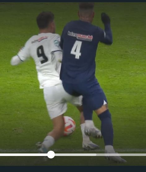 On peut discuter de la faute et du pénalty sans problème. Mais dire qu'il n'y a PAS CONTACT et que c'est EN DEHORS DE LA SURFACE, ça c'est du mensonge oui. Et les images sont criantes de vérité.