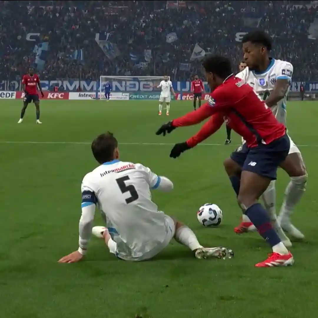 J'ai le sentiment que le Lillois pose son pied dans la continuité de sa prise d'appui et que ce n'est pas un geste volontaire.