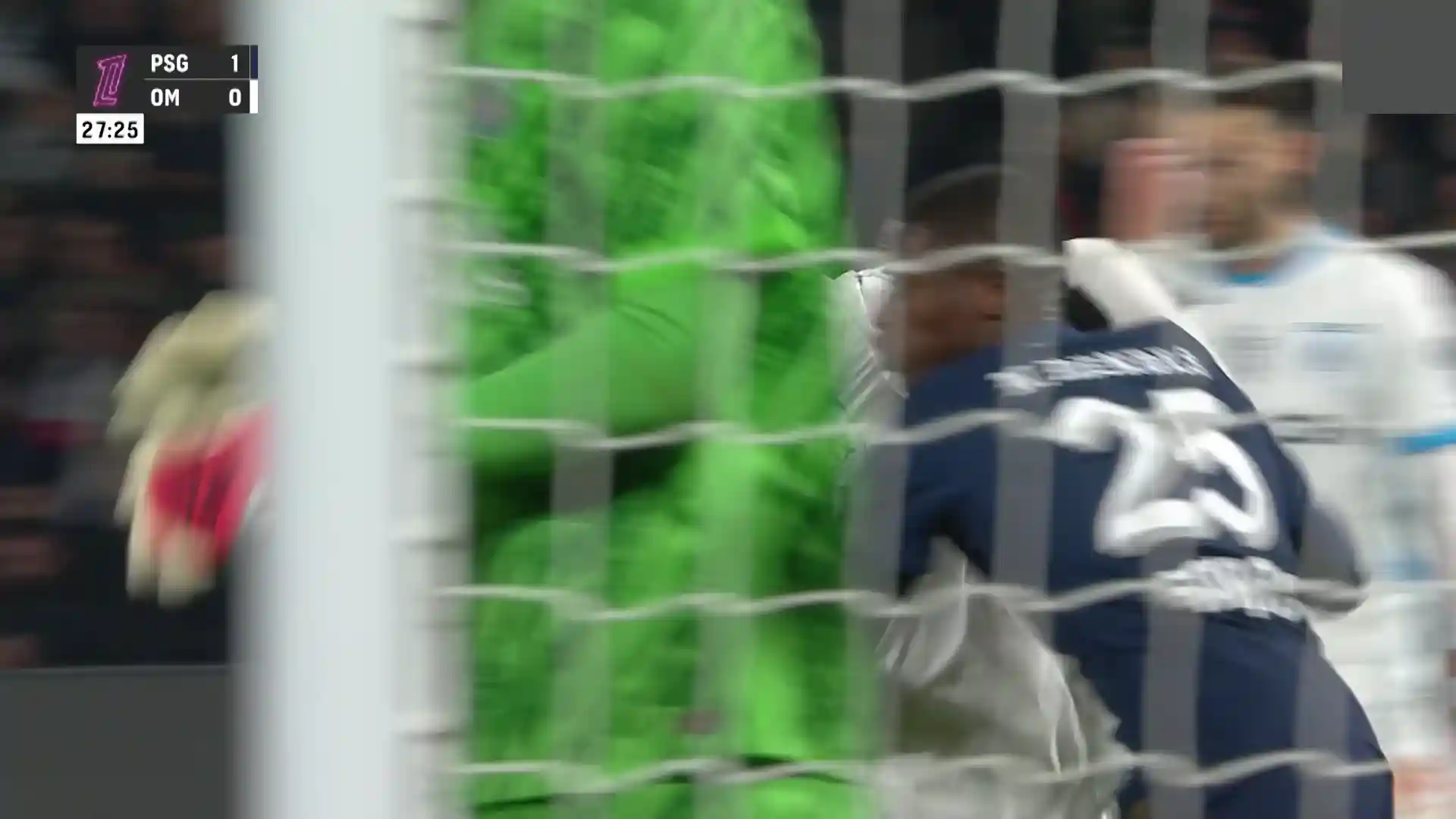 donnaruma, difficile de siffler quoi que ce soit, il pousse le marseillais qui vient le gêner, même si le ralenti est en fait très rapide, on voit pas bien sur celui-là.
