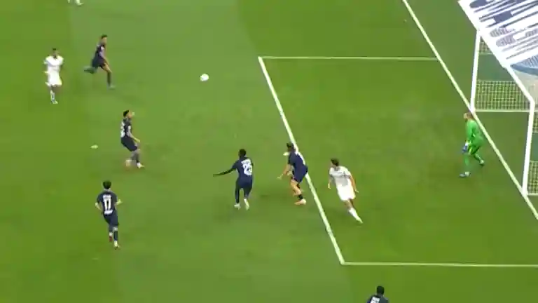 L impression que c est les fesses de Marquinhos qui touche le ballon