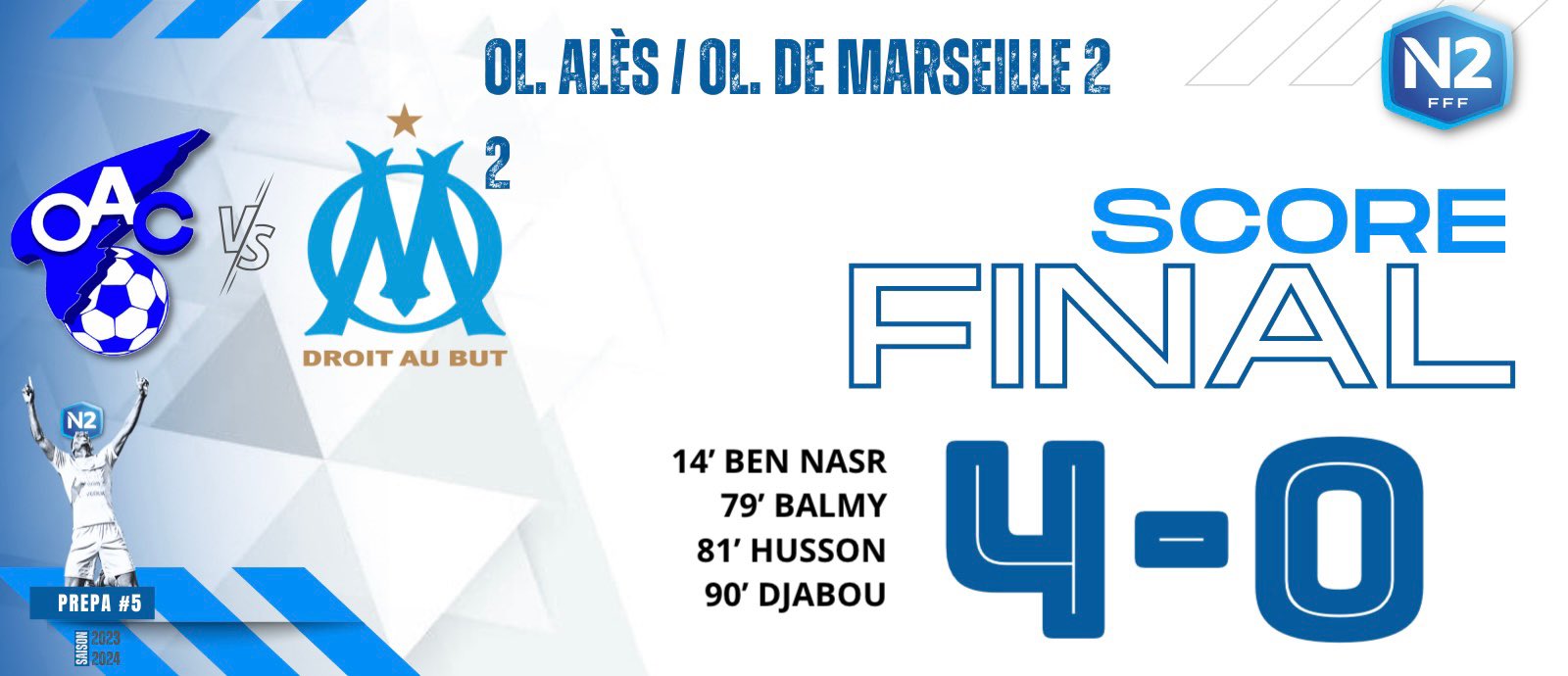 Pour le compte de son deuxième match amical de la saison 2023-2024, la réserve de l’#OM (N3) s’impose sur le score de 6-2 face au #RCG (N2). Prochain match, le 9 août prochain, à domicile, contre le #FCRSVO (FC Rousset SVO/N3).