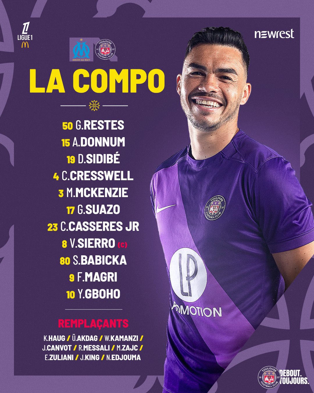 Rongier à son poste, le reste c'est du classique. Reste à voir comment Cornelius peut remplacer Balerdi....un peu peur de la relance..