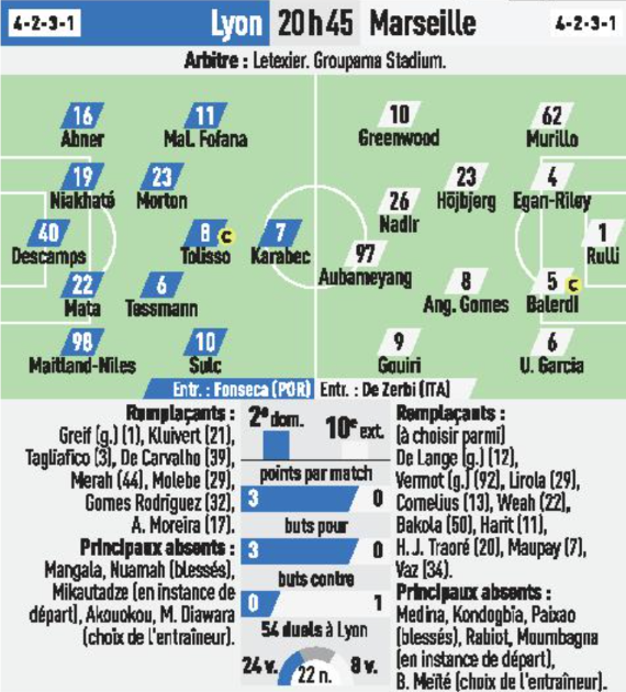 L'inquiétude principale pour moi réside au milieu, où Lyon montre une vraie agressivité avec son milieu à 3 Tessman Morton Tolisso, pendant que nous on est plus dans le flan au caramel, c'est mou, ça joue au ralenti...