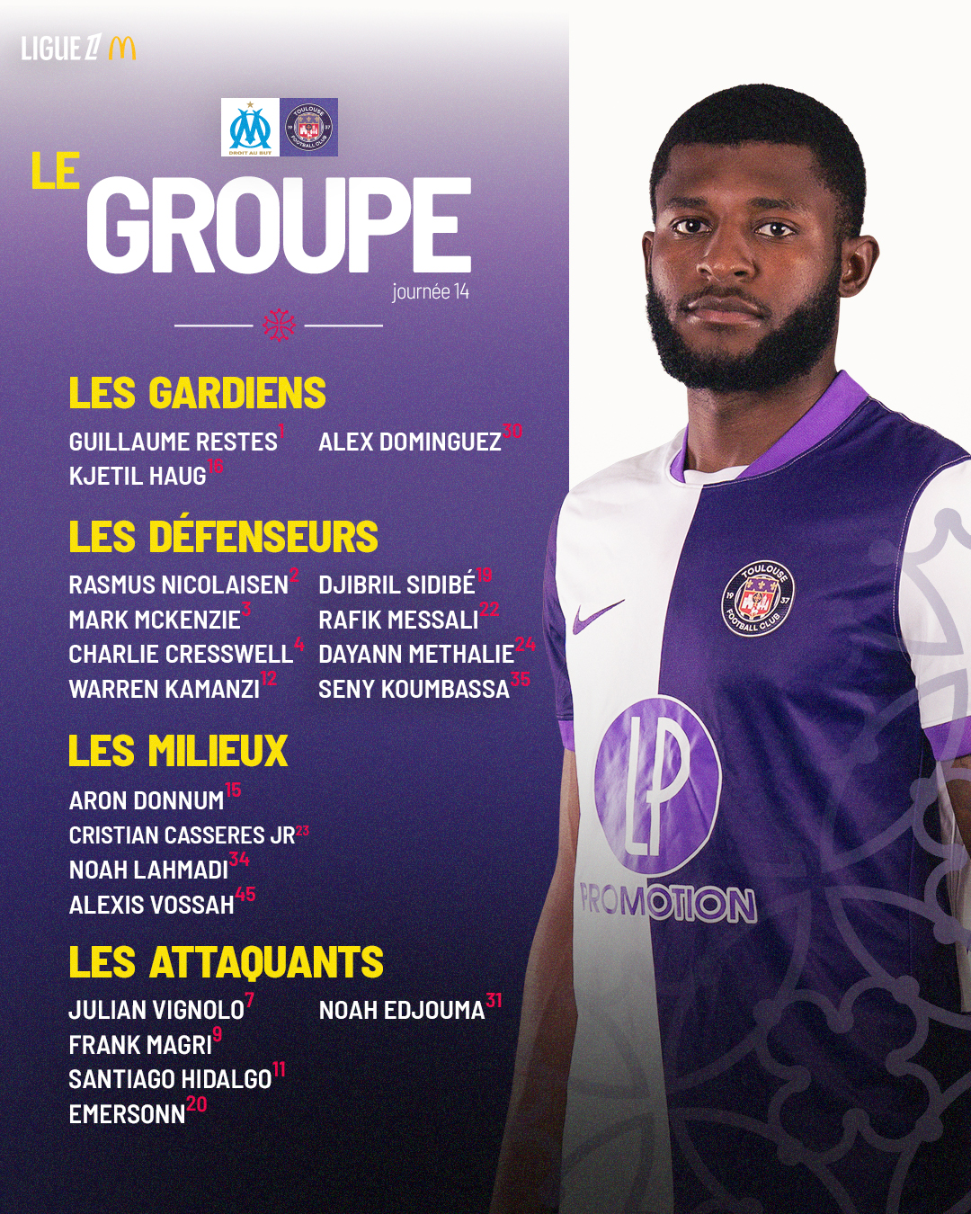 Le groupe de Toulouse #TFC pour aller à Marseille #OM :