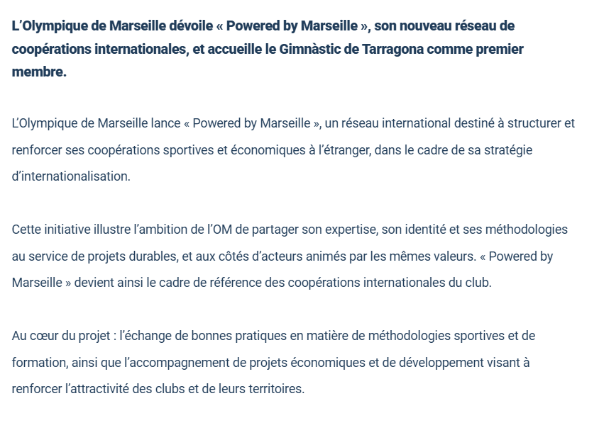A savoir que le club qui accueil Abdallah en prêt, Tarragona, fait partie du réseau de coopérations internationales initié par l'OM : "Powered by Marseille".
