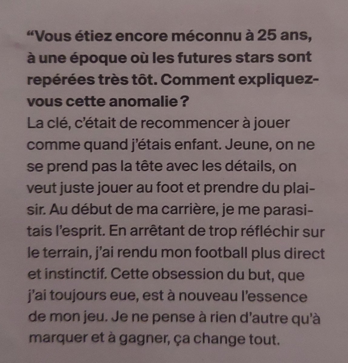 Dans ces temps où les problèmes de santé mentale sont toujours plus importants et où le football devient toujours plus mécanique, industrialisé et robotisé, j'avais envie de partager cette déclaration de Gyokeres à France football.