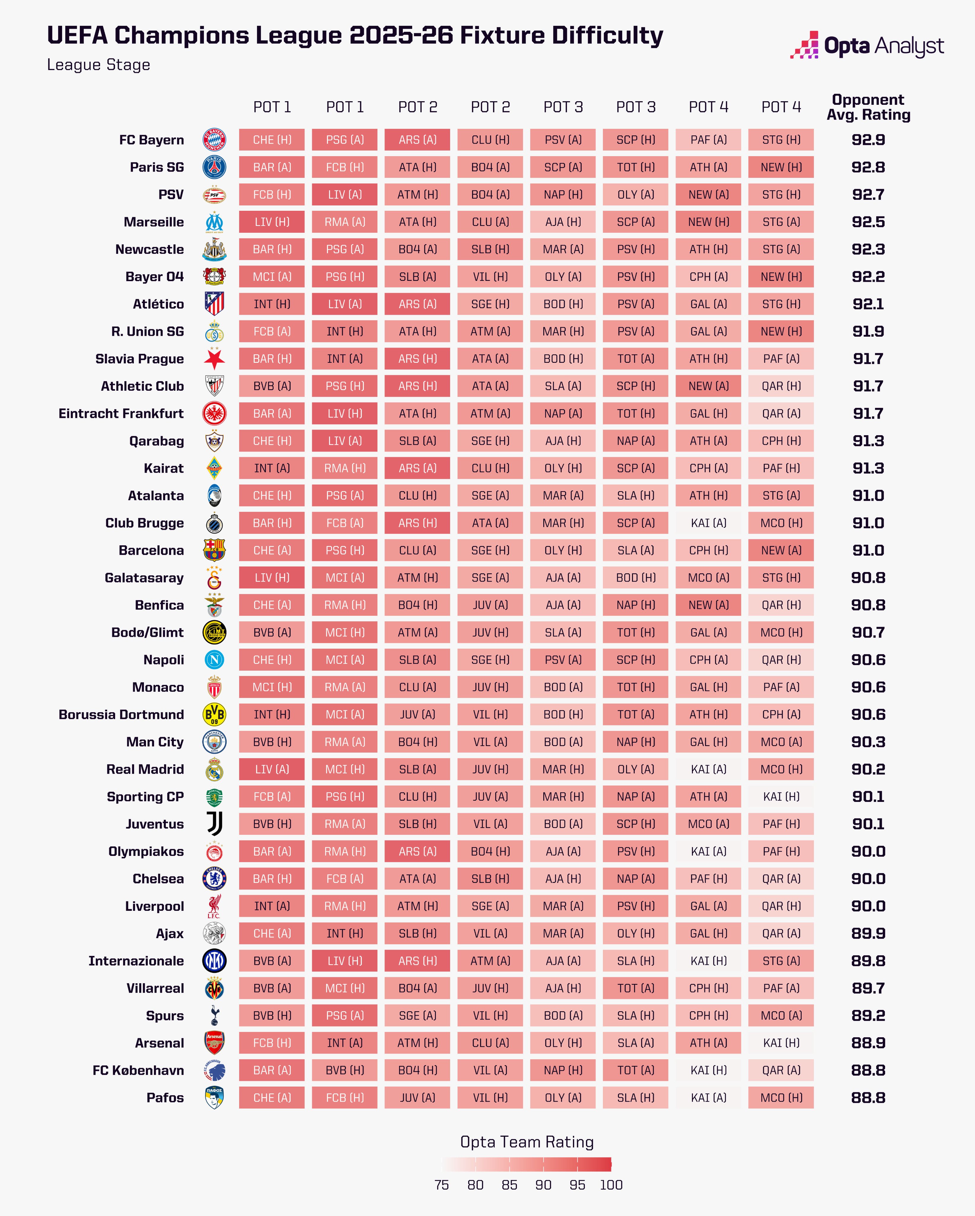 Deux équipes ne jouent que des adversaires du top 8 des championnats européens : Newcastle et... l'OM.